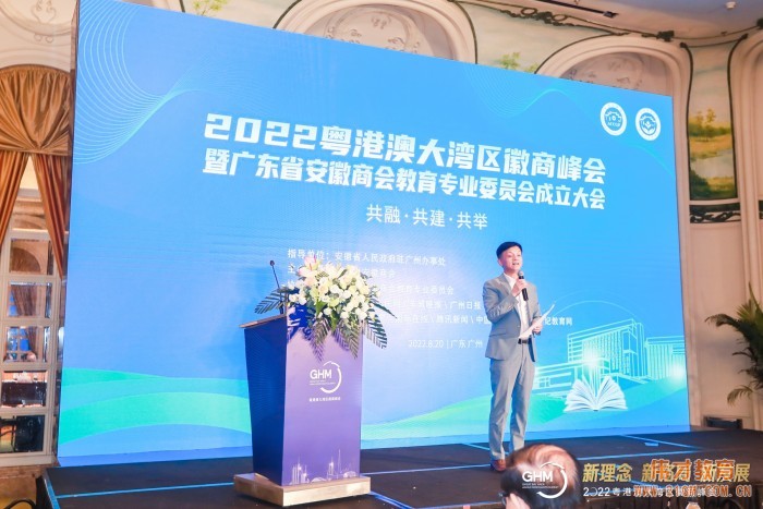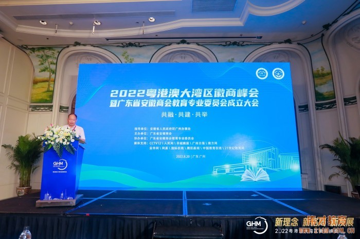 In his address, Sun Xiaobing, National Inspector of Education and former Director of the Department of Policies and Regulations under the Ministry of Education, extended his congratulations on the complete success of the 2022 Guangdong-Hong Kong-Macao Greater Bay Area Huishang Summit and the establishment of the Education Professional Committee under the Guangdong Anhui Chamber of Commerce. He encouraged the Chamber to continue bringing honor to the Huishang community and contributing to the nation's glory.